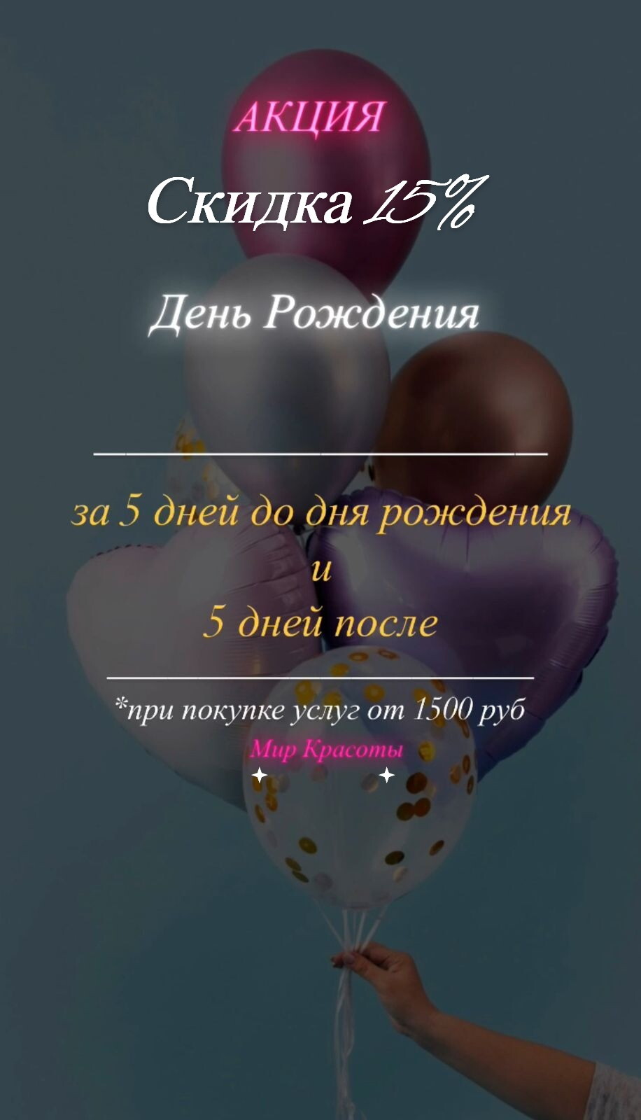 Салон среднего уровня,ничего особенного,хорошие мастера парикмахеры,жаль что мастера маникюра нет,была у Светланы,но она уволилась!Обещали карту на 10%,но так и не дали!