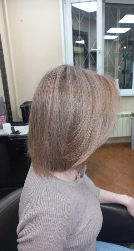 А моей подруге даже успели немного подкорректировать цвет, затонировали её немного желтоватые волосы, и получился очень красивый дорогой цвет - ближе к бежевому. Она прыгала от радости. Мастеров девушек звали Надя и Марина.